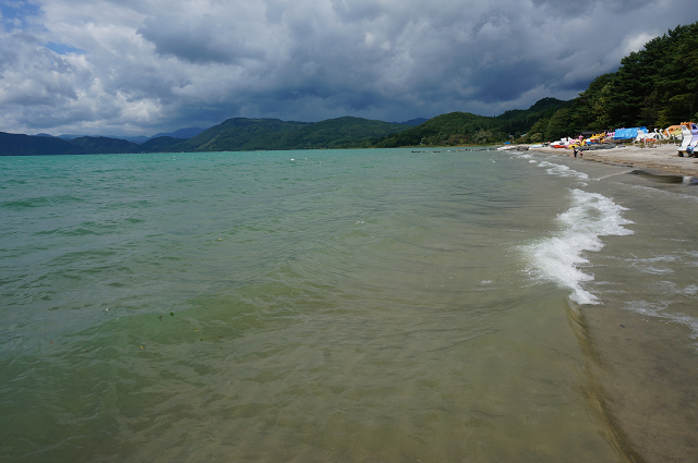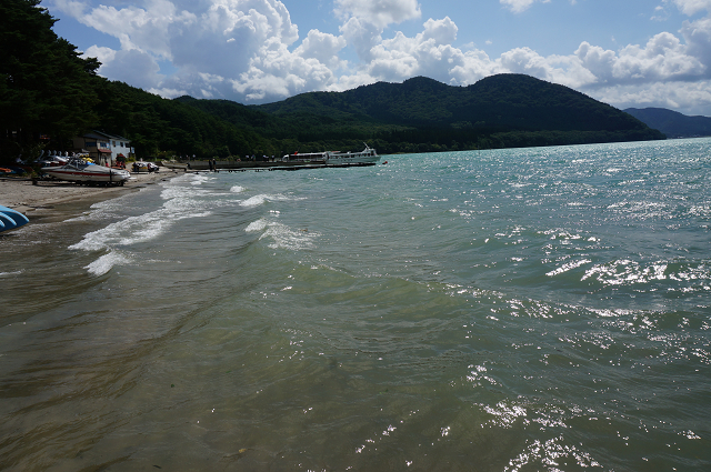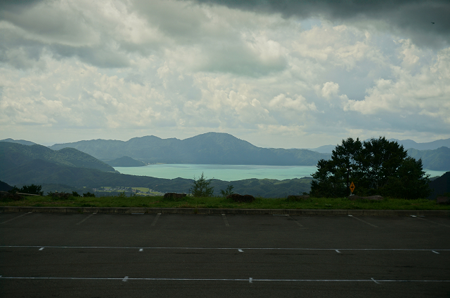 温泉から田沢湖に向かう途中の峠から見た田沢湖