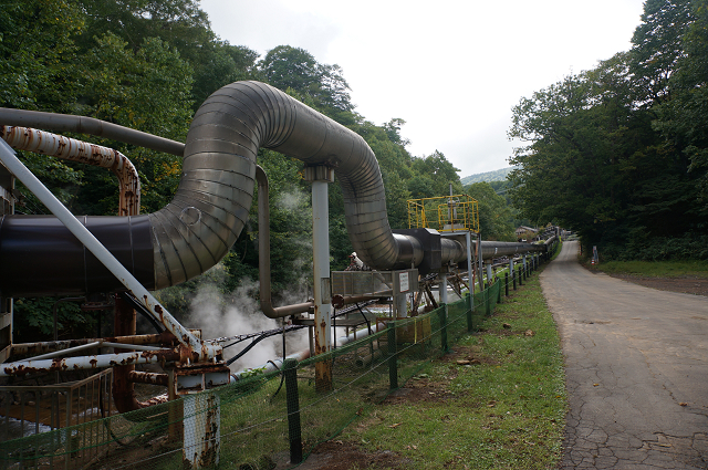 早目に出てここから川沿い500m上にある「地熱発電所」まで歩く