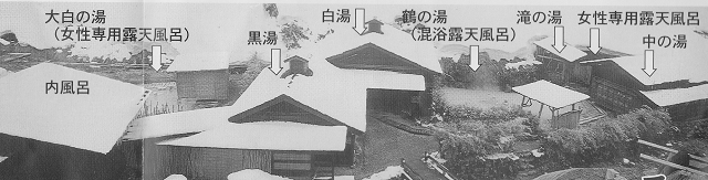 乳頭温泉郷には「孫六」「黒湯」「蟹場」「大釜」「妙の湯」「鶴の湯」などがある