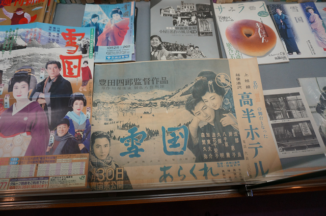 「雪国」関連の本や映画や写真が図書館のようにびっしりと並べられていた