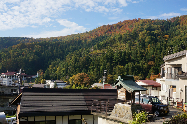 この正面の山の麓に「山の湯」がる