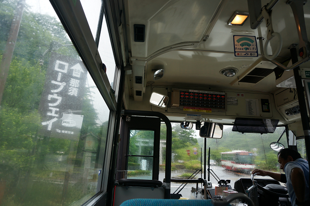 旅館横のバス停から9時7分発のバスで会津若松駅に向かう