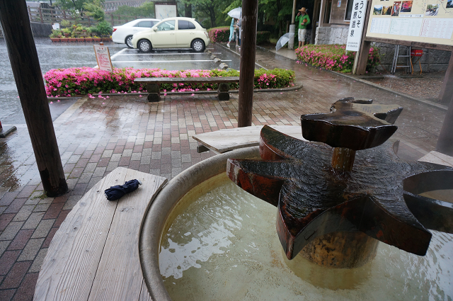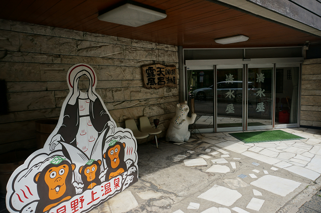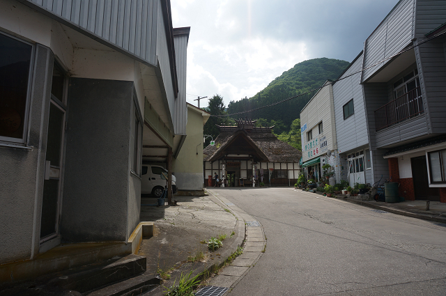 駅途中の湯野上温泉の元湯「清水屋」で立ち寄り湯を乞う