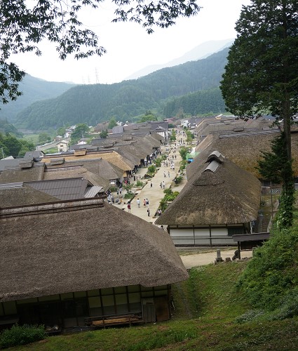 方面のバスが出ている これに乗りまず「大内宿」まで行く 約1時間