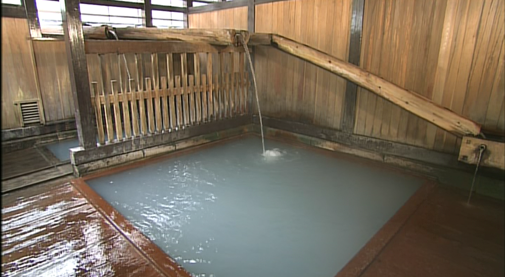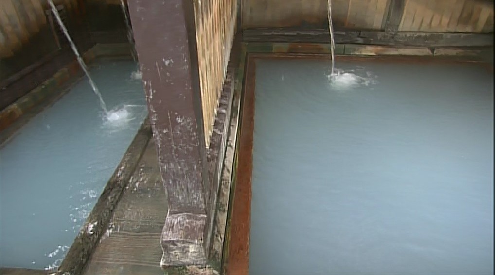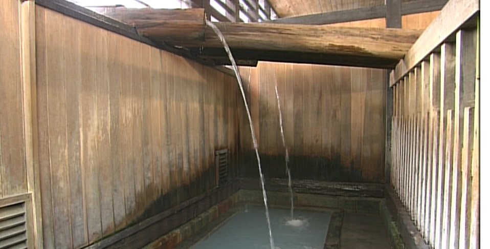 そこから木をくりぬいて湯管で直接湯船に湯を落とす