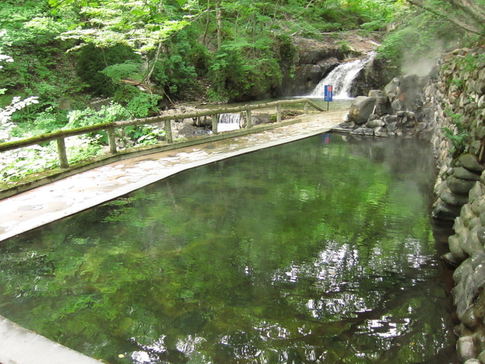あの滝と滝つぼと川が温泉でざあ~ざあ~流れている