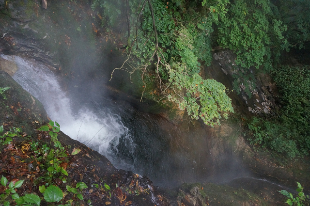 うす暗い狭い階段を15~6段降りると滝がざあ~ざあ~