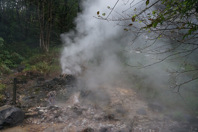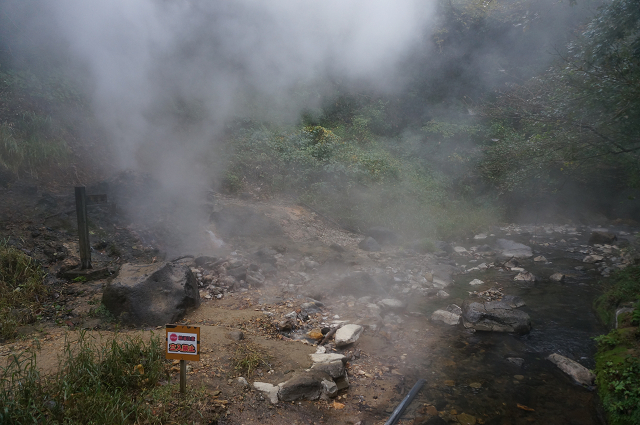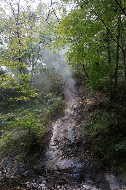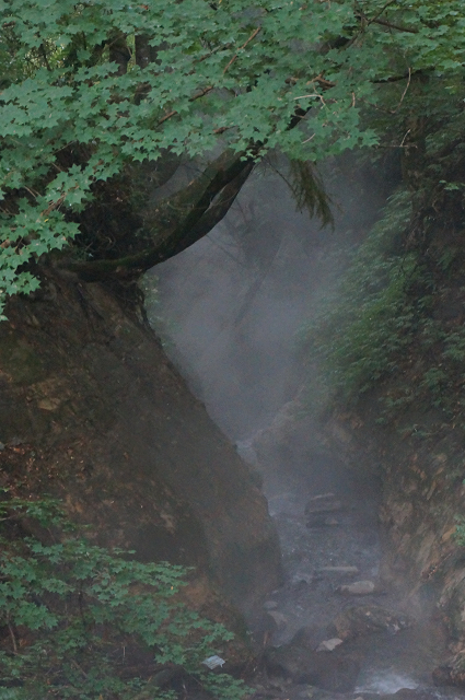 湯けむりが狭い谷にむんむんしてアマゾンのジャングル状態
