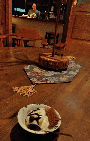 バスの時間までバス停近くの建設中の共同浴場の横のレストランで