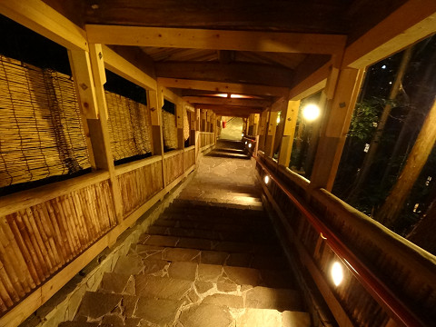 目当ての「森林露天風呂」はさらにそれから階段を登るところ後ろの山の頂近く