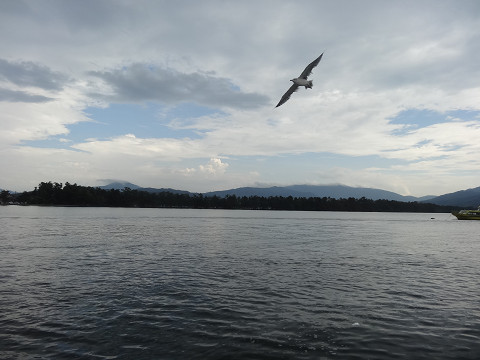 カモメも対岸近くまで付いてきた