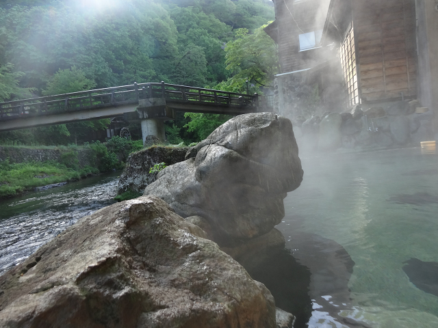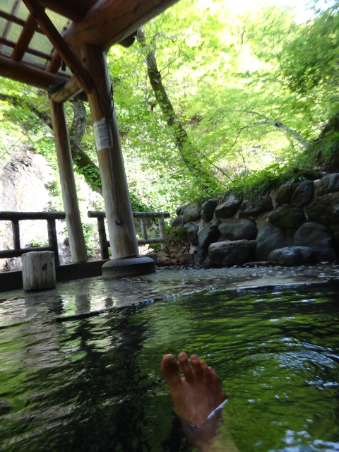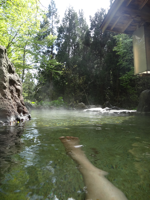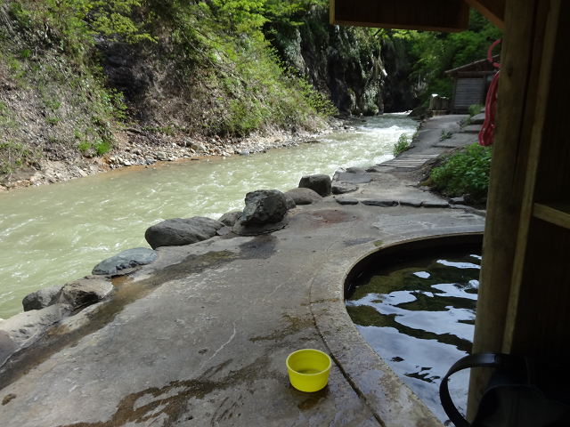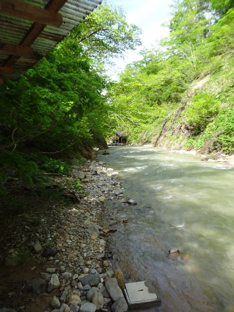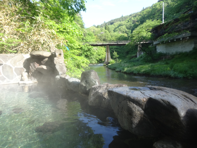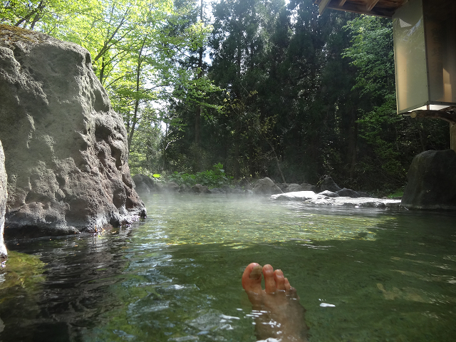 川に面した石に肘を当て賢治もこの湯をたのしんだんだろうな