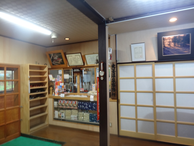内風呂に入って玄関に戻るとお兄さんが「露天は靴を履いて50mほどの森の中です」という