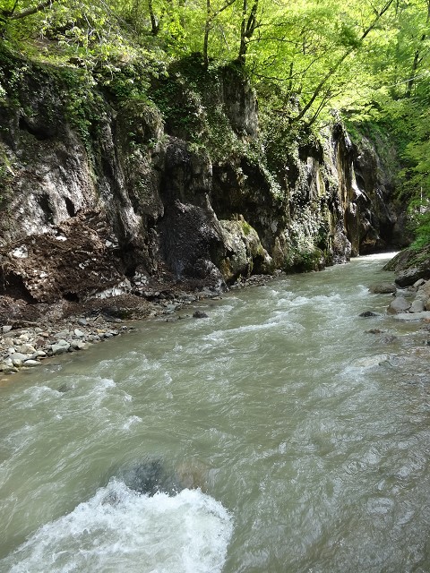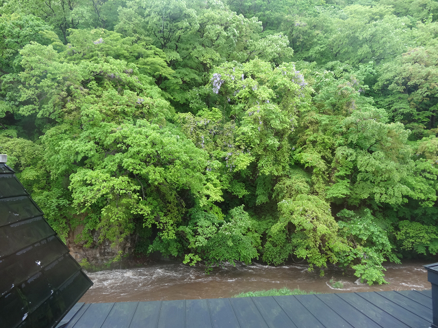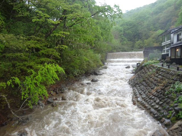 昨日からの雨で川は濁っているが雨が止むとみるみる奇麗になる