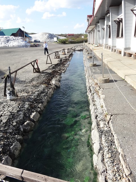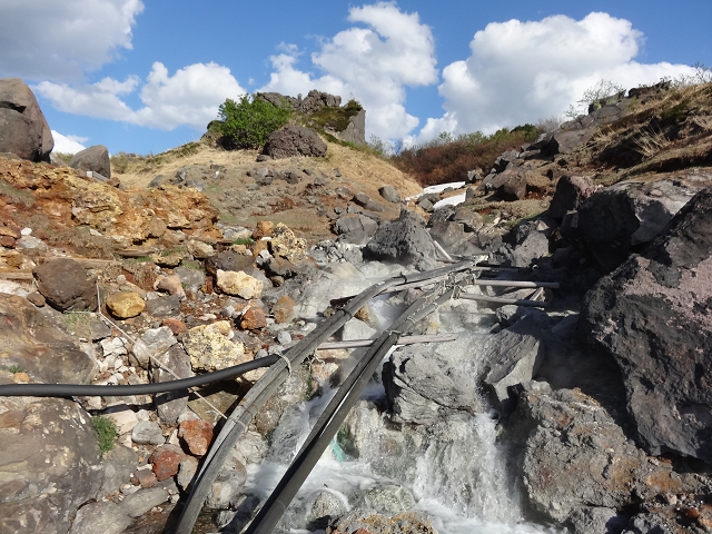 向こうからくるおじさんにこの湯はどこに行くのかと聞くと沢に流すという
