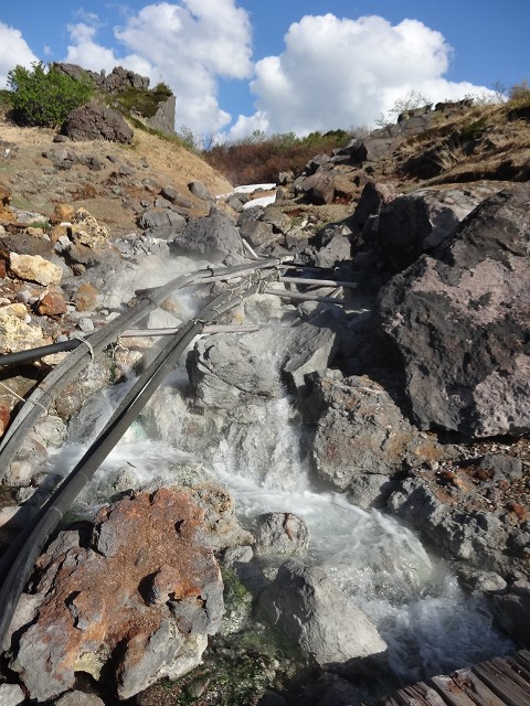 大湯は熱くてとても入れない 入れない風呂なんて・・・(なんで冷却法を考えないのかな)
