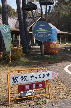 浅間牧場停車場から歩いて10分に現在放牧中と書いてある
