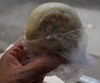 バス待ちに「高菜のおやき」を食べたがやっぱりソフトクリーのほうが美味い