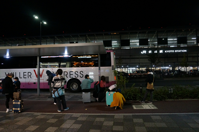 駅前発京都駅行夜行バスは20時23分に出る
