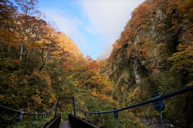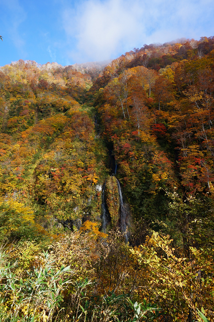 赤倉は今ロープウエイも台風で止まっているしこの天気なら「いもり池」と「苗名滝」にと教えてくれ