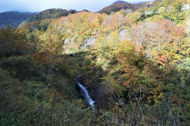 次のバスの運転手さんも1人客に対して親切 左下に滝が見えますと言ってバスを止めてくれる