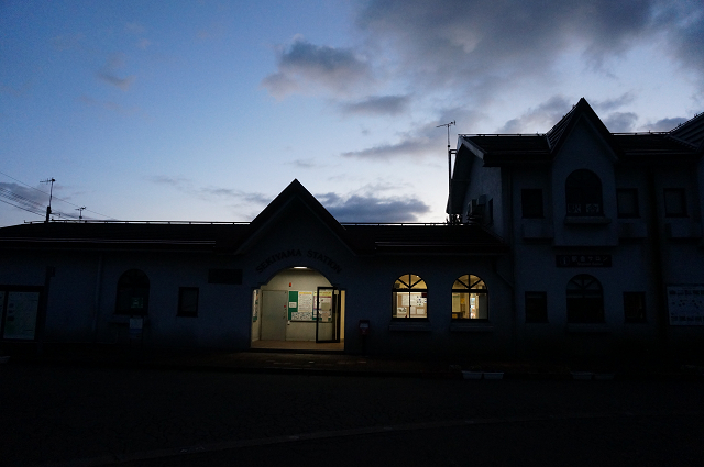 夜明け前の暗闇の中 妙高高原駅手前「関山駅」(5:48分着)で降りる