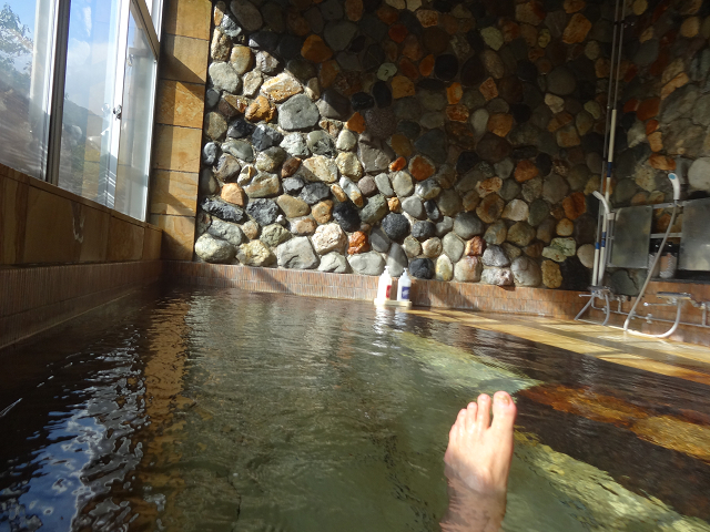 いい湯だ少し熱めでイオウ臭とヌルヌル感 ここも客が1人なので思う存分楽しめた もう皮膚がふやけてメロメロ