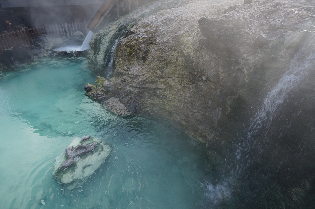 ここの風呂は湯畑から引いているので相当量の水を入れて棒でかき混ぜないと熱くて入れなかった
