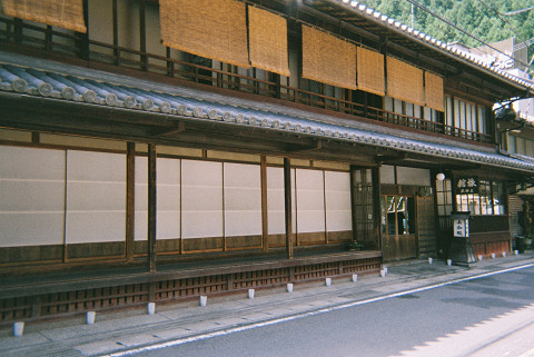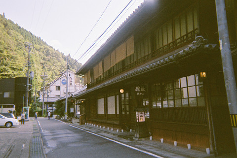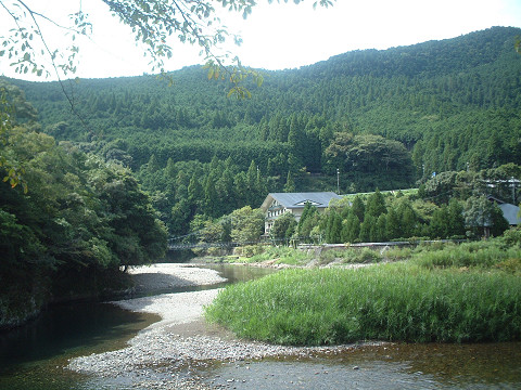 「四村川の流れる狭い谷の両岸に15軒の旅館が軒をならべる、静かな温泉街である。