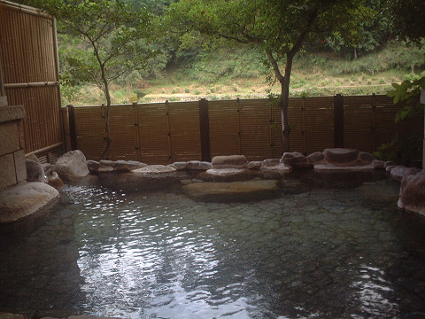 1800年の歴史があるとされ、小栗判官回復の伝説がある。1日に7回湯の色が変わると言われている。