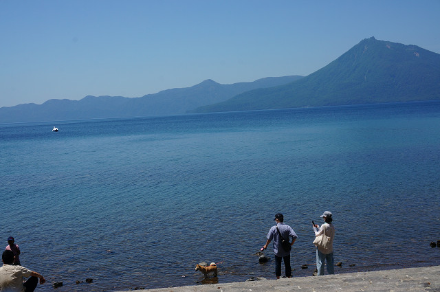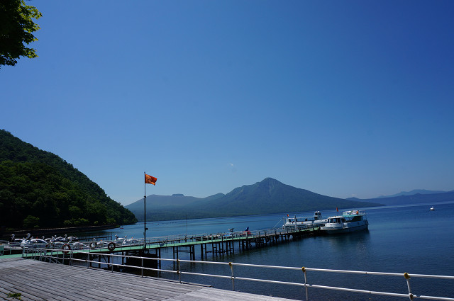 今日の宿「丸駒温泉」は湖畔の宿で有名だがこの観光センターから10数キロ離れた対面にある
