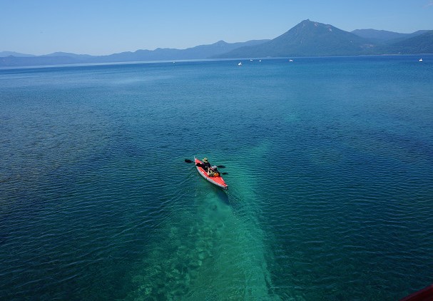 まず支笏湖ブルーと言われる湖の水中が見れる船に乗る