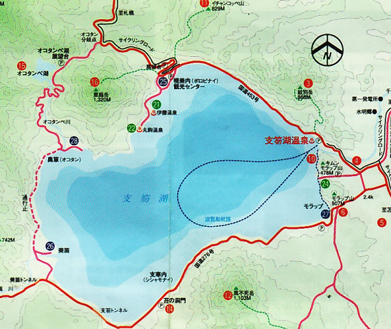 支笏洞爺国立公園内、支笏湖の東岸に支笏湖温泉、北西側に丸駒温泉、支笏湖いとう温泉が存在する。