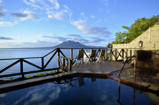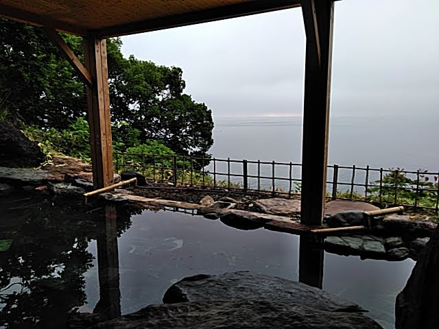 ここのセールスポイントはなんといっても湖水と一体になった露天風呂である