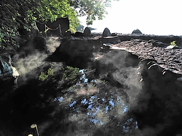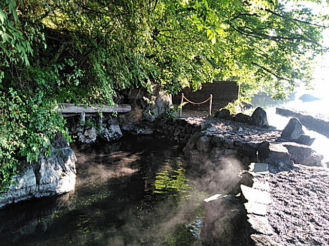湖水よりはるかに低いので湯に浸かると湖面が全く見えない