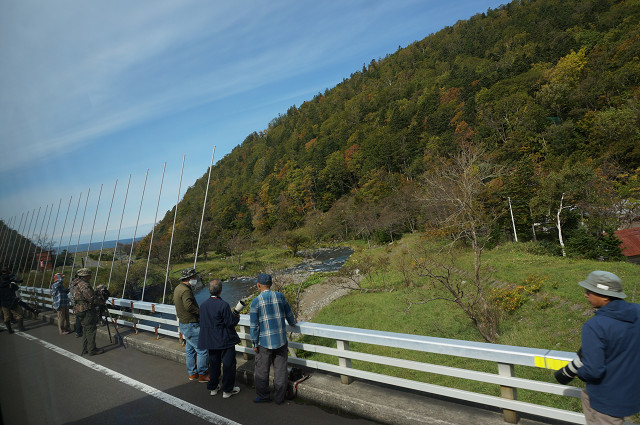 ウトロ方面に向かって国道334号線を1時間半 鮭の遡上が見れる遠音別川(おんねべつ)に向かう