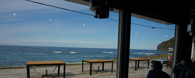 どこかの海岸の食堂で昼食タイム