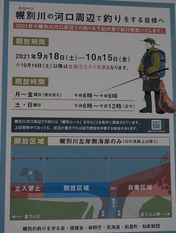 漁業権上鮭が遡上する川や河口周辺での釣りは禁止されパトカーも巡回しているらしいが