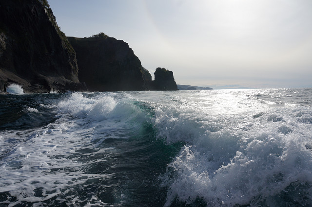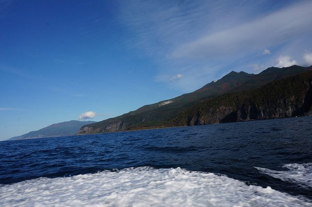 ウトロ港を通り過ぎいよいよ知床世界自然遺産地区に入る