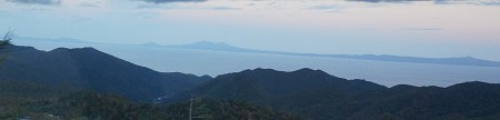 上の写真の黄色〇から国後島を見る