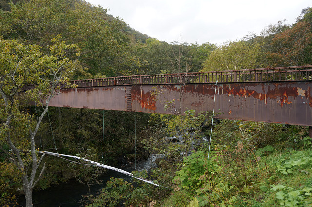 TVで見た番屋傍の橋 テレビではこの橋が世界自然遺産の条件に合わないので撤去しなさいとカナダの学者が言っていた
