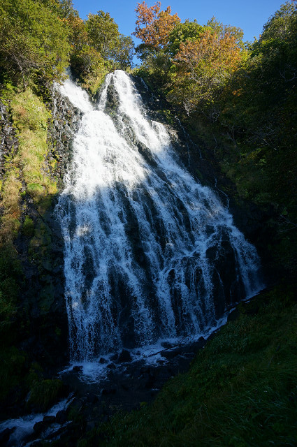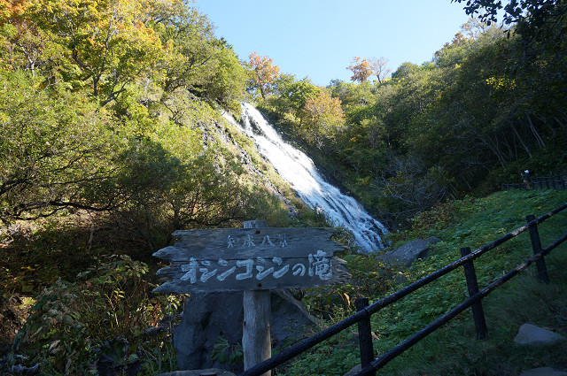 途中ウトロ港から7kmの「オシンコシンの滝」により網走市内を抜けて