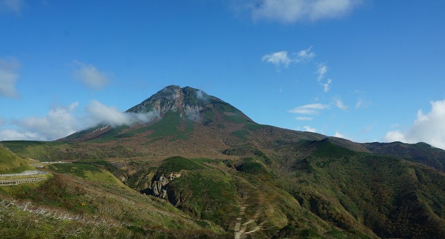 羅臼岳が余りにも奇麗だと言う事で峠で写真タイムをくれた