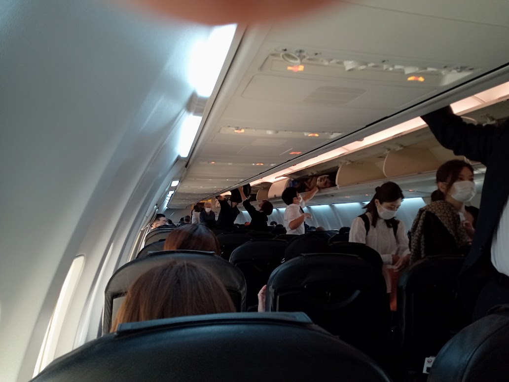機内は混んでいる