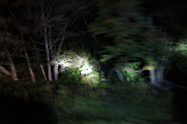 強力な懐中電灯が5個配られて皆で道筋や河原を照らしながらバスはゆっくり進