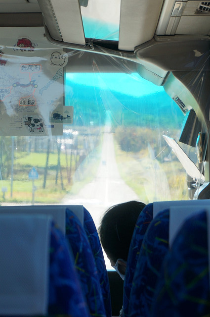 バスの運転手さんが少し遠回りして「天に続く道」を通りますと言う