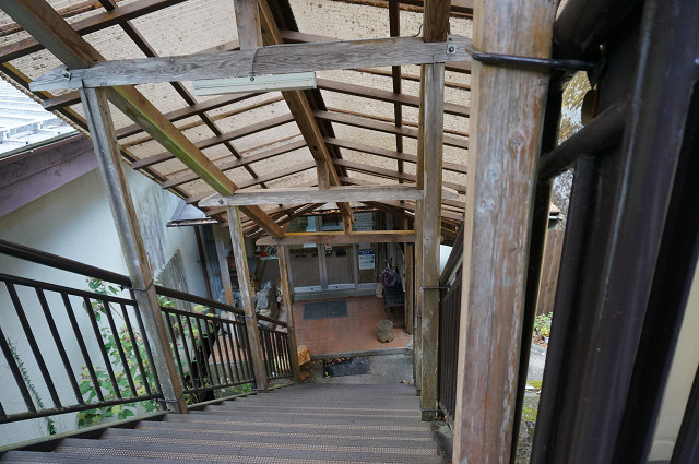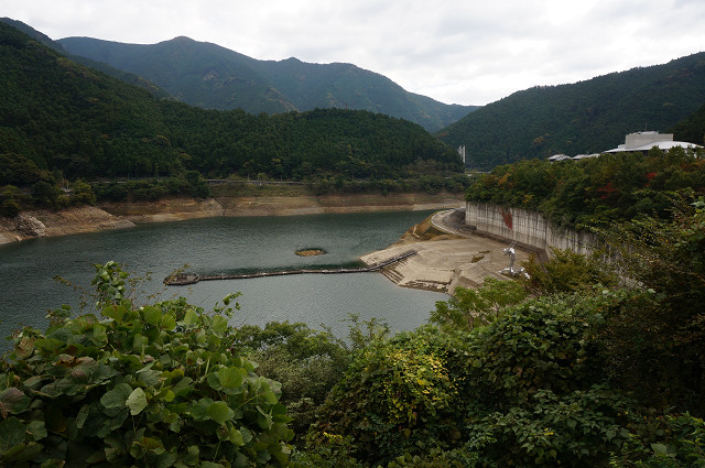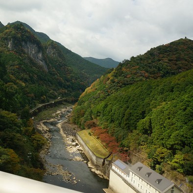 入之波温泉は大迫ダムの斜面に引っかかっているように建てられている