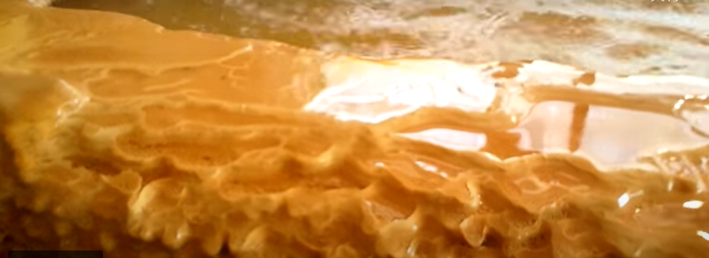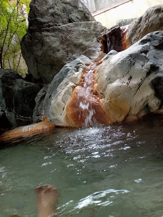 入之波温泉からのカルシゥムとナトリウムと鉄を含んだお湯の結晶が