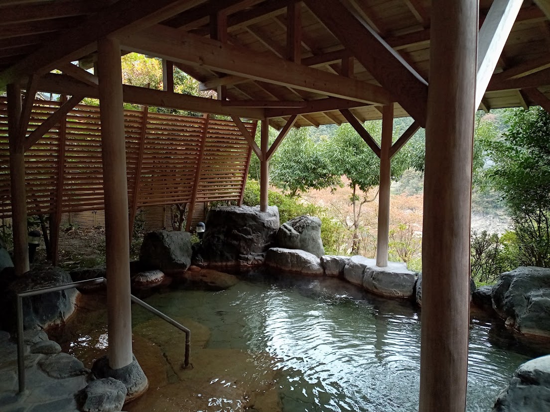 もとは川底に有ったらしいがダムの建設で温泉施設も源泉も底から汲んでいると聞く