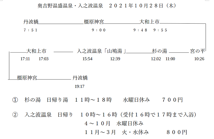 入之波迄の直通バスは無く途中「杉の湯」で1時間30分待ちで入之波に行く(以前はここまでしかコミュニティーバスは来なかった。近鉄系バスが無くなって入之波に行くようになった)